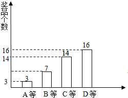 分析:(1)根据D等级奖品的个数与所占的百分比列式计算即可求出奖品总数,先求出B等级奖品的个数,再根据算术平均数的计算方法列式计算即可得解;