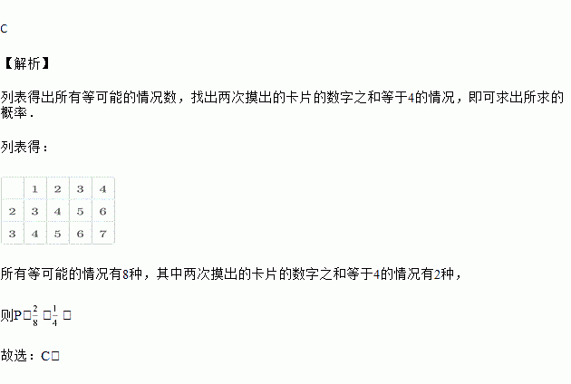 ,现随机从口袋里取出一张卡片,则两次摸出的卡片的数字之和等于![]()