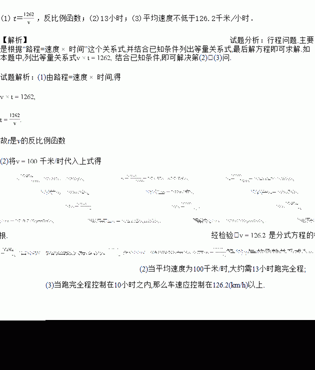 (1)那么汽车行驶全程所需时间t(小时)与行驶的平均速度v(千米/小时)之间有怎样的关系?t是v的什么函数?