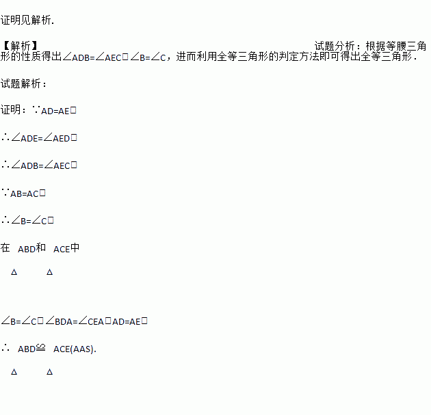如图:AB=AC,AD=AE,BE=CD,试说明:△ABD≌△ACE.