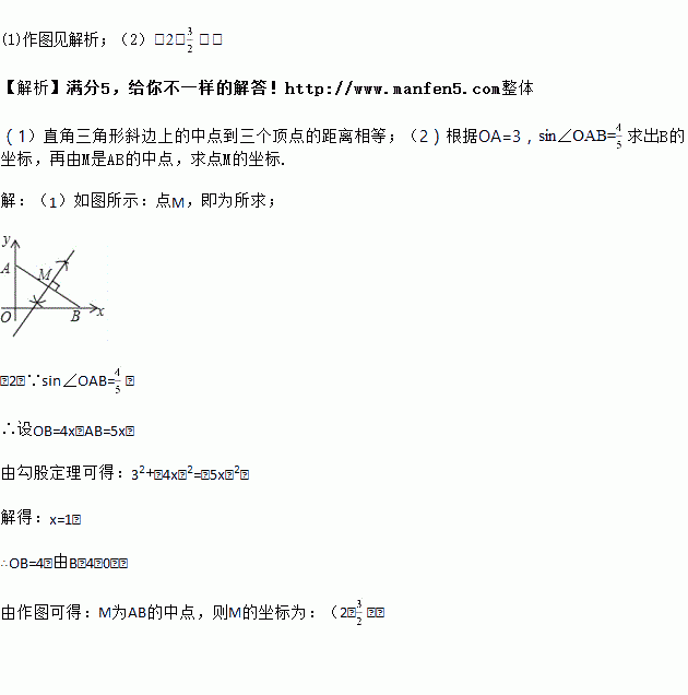 (1)在坐标系中求作一点M,使得点M到点A,点B和原点O这三点的距离相等,在图中保留作图痕迹,不写作法;