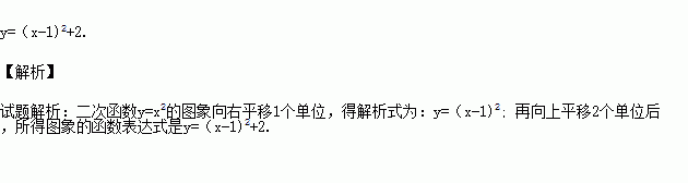 将二次函数的图象向右平移1个单位,再向上平移2个单位后,所得图象的函数表达式是 .