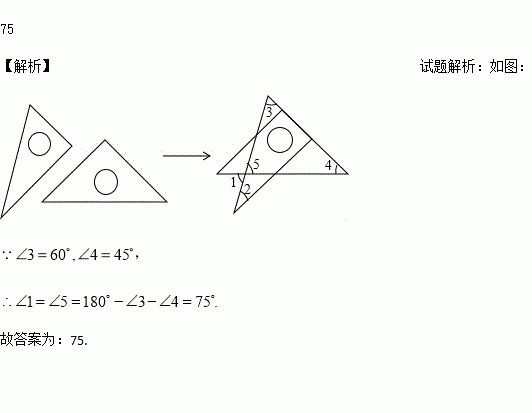 将一副直角三角板如图放置,使含30°角的三角板的直角边和含45°角的三角板的一条直角边重合,则∠1的度数为_____度.