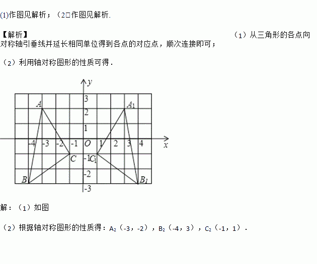(2)直接写出△ABC关于x轴对称的三角形△A2B2C2的各点坐标.