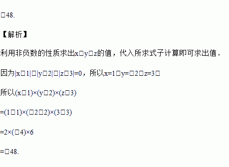 若|x-1|+|y+2|+|z-3|=0,求(x+1)×(y-2)×(z+3)的值.