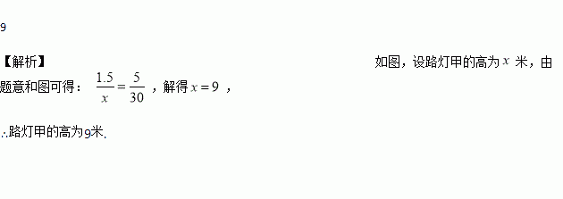 如图,甲、乙两盏路灯底部间的距离是30米,一天晚上,当小华走到距路灯乙底部5米处时,发现自己的身影顶部正好接触到路灯乙的底部.已知小华的身高为1.5米,那么路灯甲的高为________米.