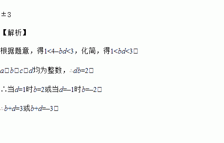 对于整数a,b,c,d,定义 =ac﹣bd,已知1< <3,则b+d的值为_______.
