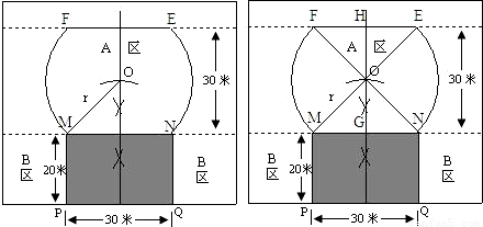 ÈçͼÊÇij±ÈÈü³¡¹ÝµÄÆ½ÃæÍ¼£¬¸ù¾Ý¾àÀë±ÈÈü³¡µØµÄÔ¶½üºÍÊӽǵIJ»Í¬£¬½«¹ÛÈü³¡µØ»®·Ö³ÉA¡¢B¡¢CÈý¸ö²»Í¬µÄƱ¼ÛÇø£®ÆäÖÐÓ볡µØ±ßÔµMNµÄÊӽǴóÓÚ»òµÈÓÚ45°£¬²¢ÇҾೡµØ±ßÔµMNµÄ¾àÀë²»³¬¹ý30mµÄÇøÓò»®·ÖΪAÆ±Çø£¬BÆ±ÇøÈçͼËùʾ£¬Ê£ÏµÄΪCÆ±Çø£®£¨¦ÐÈ¡3£©£¨1£©ÇëÄãÀûÓó߹æ×÷ͼ£¬ÔÚ¹ÛÈü³¡µØÖУ¬×÷³öAÆ±ÇøËùÔÚµÄÇøÓò£¨Ö»Òª×÷³öͼÐΣ¬±£Áô×÷ͼºÛ¼££¬²»ÒªÇóд×÷·¨£©£»