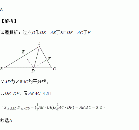 已知:如图,AD是△ABC的角平分线,且AB:AC=3:2,则△ABD与△ACD的面积之比为( )