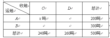 某地A、B两村盛产柑橘,A村有柑橘200吨,B村有柑橘300吨,现将这些柑橘运到C、D两个冷藏仓库.已知C仓库可储存240吨,D仓库可储存260吨,从A村运往C、D两处的费用分别为每吨20元、25元,从B村运往C、D两处的费用分别为每吨15元、18元.设从A村运往C仓库的柑橘重量为x吨,A、B两村运往两仓库的柑橘运输费用分别为yA元、yB元.