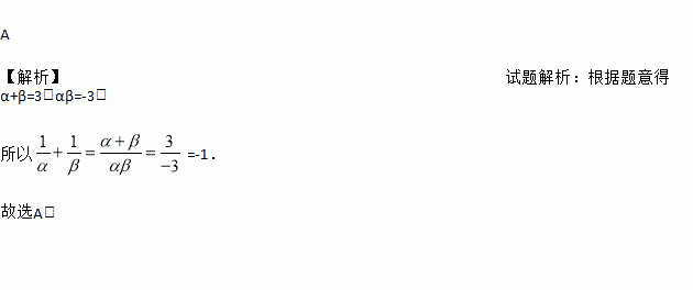已知一元二次方程x2-3x-3=0的两根为α与β,则的值为( )