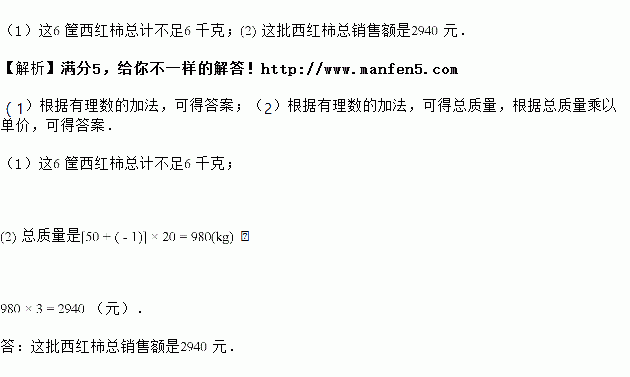 (1)这6筐西红柿总计是超过或不足多少千克?