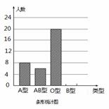 (3)将条形统计图中“B型”血部分的条形图补充完整。(2分)
