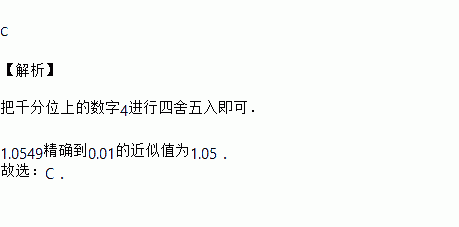 若一个物体的质量为1.0549kg,则用四舍五入法将1.0549精确到0.01的近似值为( )