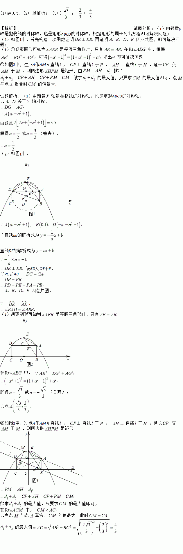 (1) 若矩形ABCD的周长为3.5,求a的值;