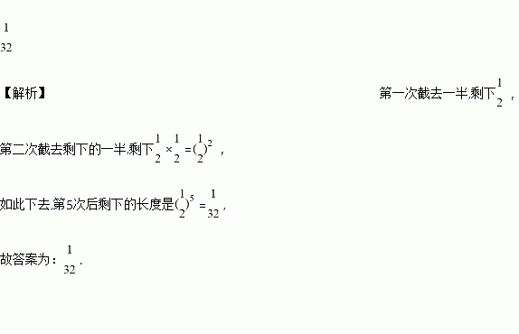 将一根长1米的木棒,第一次截去一半,第二次截剩下的一半,截至第五次,手中的木棒是_______米.