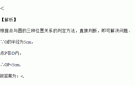 已知的半径为,点在内,则________(填“”、“”或“”)