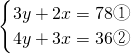 ,①×3-②×2得,y=212,把y=212代入①得,3×212+2x=78,解得x=-279,