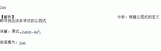 多项式2ab2﹣8a2b提出的公因式是_______.