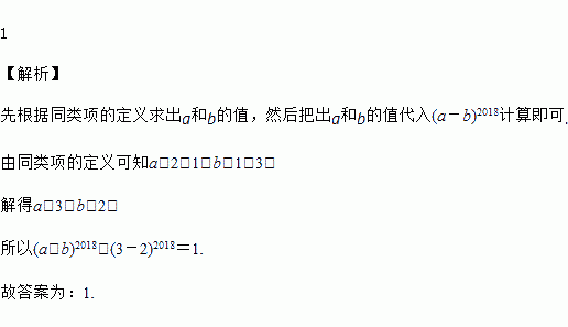 如果单项式-xyb+1与xa-2y3是同类项,那么(a-b)2018=________.
