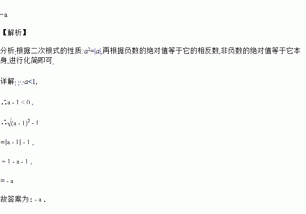 若a<1,化简-1=_____.