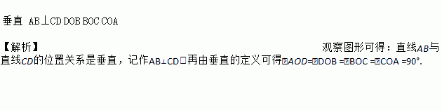 如图所示,直线AB与直线CD的位置关系是_____,记作_____,此时,∠AOD=∠____=∠___=∠____=90°.