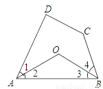如图,在四边形ABCD中,∠1=∠2,∠3=∠4,且∠D+∠C=220°,求∠AOB的度数.