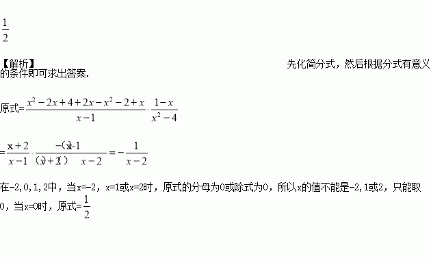 先化简÷,再在-2,0,1,2中选一个合适的数代入求值。