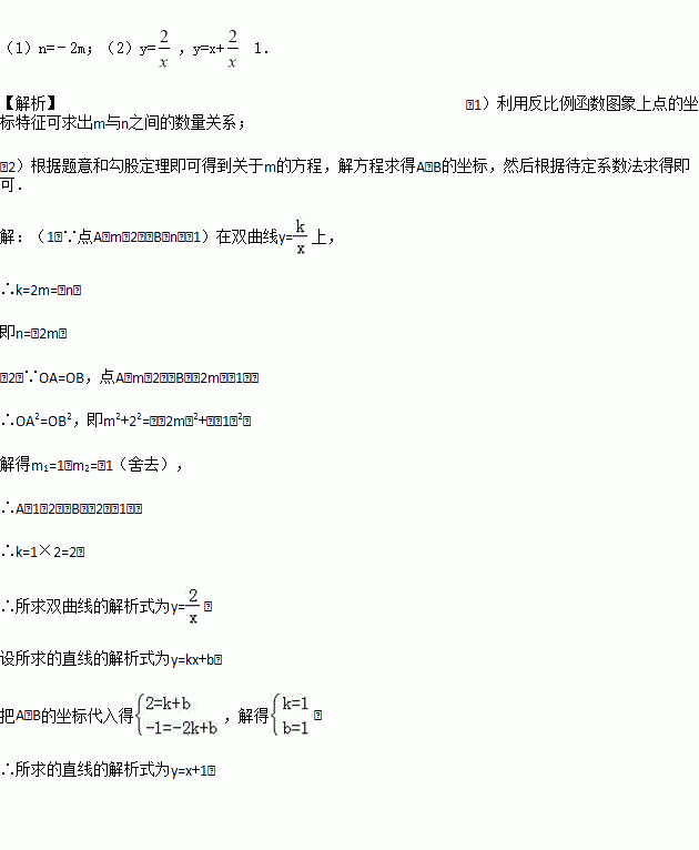 (2)若OA=OB,求该双曲线和直线的解析式.