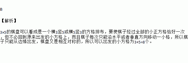 在3×5的棋盘上,一枚棋子每次可以沿水平或者垂直方向移动一小格,但不可以沿任何斜对角线移动.从某些待定的格子开始,要求棋子经过全部的小正方格恰好一次,但不必回到原来出发的小方格上.在这15个小方格中,有( )个可以是这枚棋子出发的小方格.