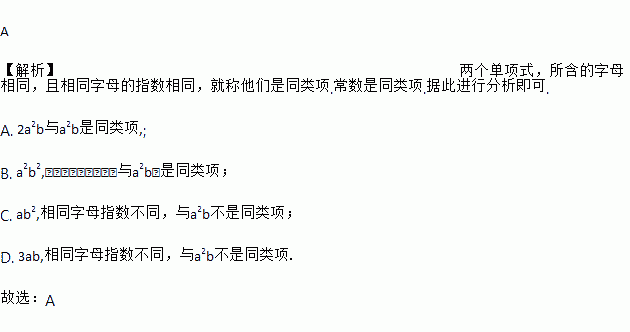 A. 2a2b B. a2b2 C. ab2 D. 3ab