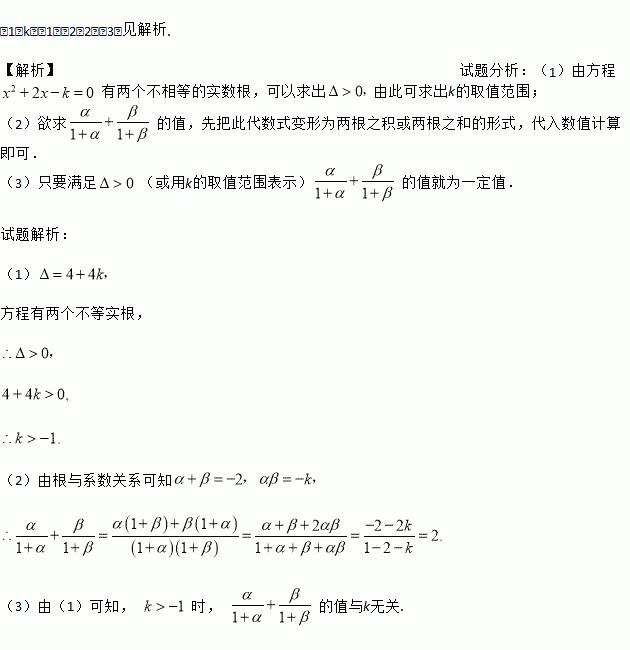 已知:关于x的方程x2+2x﹣k=0有两个不相等的实数根.