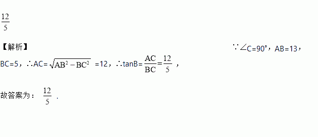 在△ABC中,∠C=90°,AB=13,BC=5,则tanB=________.
