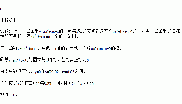 ax2+bx+c | ﹣0.06 | ﹣0.02 | 0.03 | 0.09 |