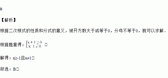 A. ﹣1<x<1 B. x≥﹣1且x≠1 C. x≥﹣1 D. x≠1