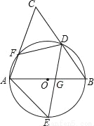 如图,AB是⊙O的直径,D、E为⊙O上位于AB异侧的两点,连接BD并延长至点C,使得CD=BD,连接AC交⊙O于点F,连接AE、DE、DF.