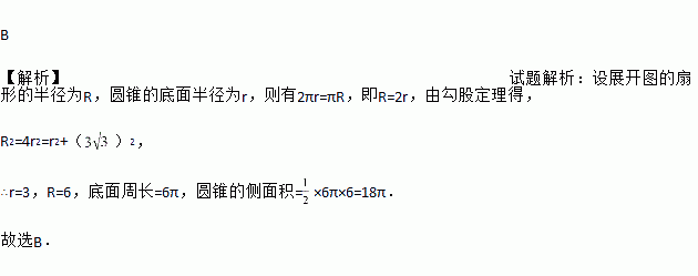 一个圆锥的高为,侧面展开图是半圆,则圆锥的侧面积是( )