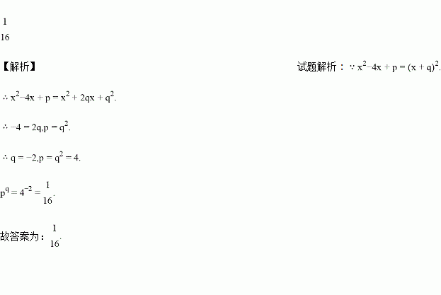若x2﹣4x+p=(x+q)2,则pq=______.