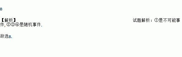 B 【解析】试题解析:①是不可能事件, ②③④是随机事件. 故选B.
