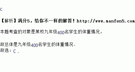 为了了解某校九年级400名学生的体重情况,从中抽查了50名学生的体重进行统计分析,在这个问题中,总体是指
