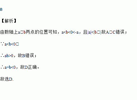 已知a,b两数在数轴上对应的点如图所示,下列结论正确的是( )
