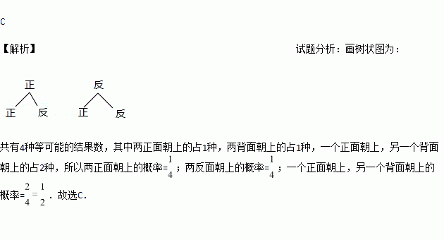 C. 一个正面朝上,另一个背面朝上 D. 三种情况发生的概率一样大