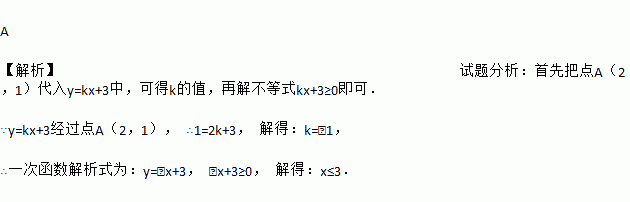 直线y=kx+3经过点A(2,1),则不等式kx+3≥0的解集是( )