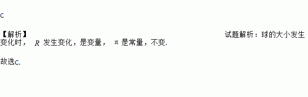 C 【解析】试题解析:球的大小发生变化时, 发生变化,是变量, 是常量,不变. 故选C.