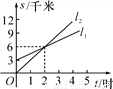 已知A地在B地正南方向 3 千米处,甲、乙两人分别从两地向正北方向匀速直行,他们与A地的距离S (千米)与所行时间t (时)之间的关系如图,其l2表示甲运动 的过程,l1表示乙运动的过程,根据图象回答: