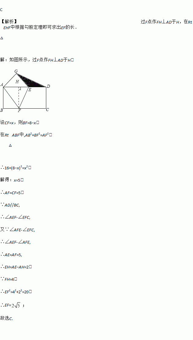 如图,把长方形纸片ABCD折叠,使其对角顶点C与A重合.若长方形的长BC为8,宽AB为4,则折痕EF的长度为( )