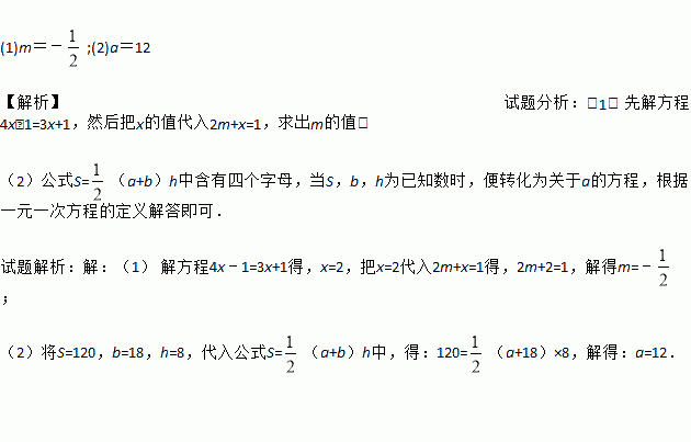 (1) 若方程4x-1=3x+1和2m+x=1的解相同.求m的值.