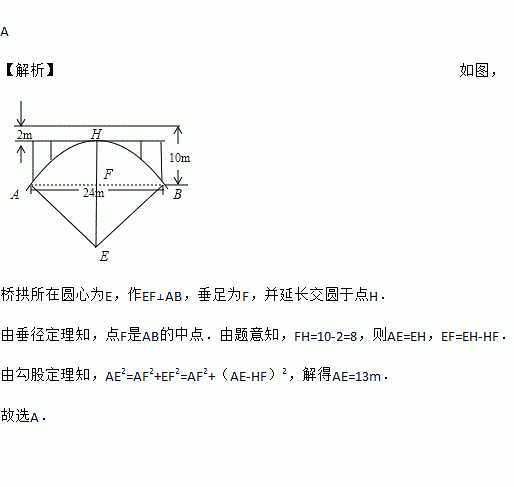 如图是某座天桥的设计图,设计数据如图所示,桥拱是圆弧形,则桥拱的半径为( )