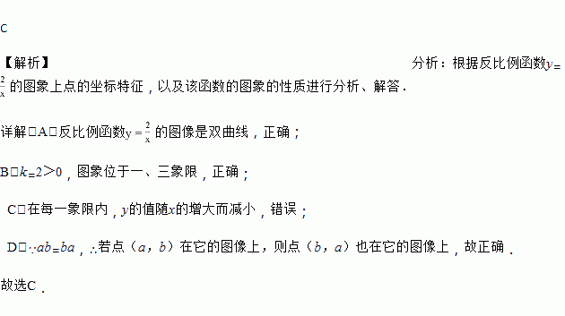 D. 若点(a,b)在它的图像上,则点(b,a)也在它的图像上.