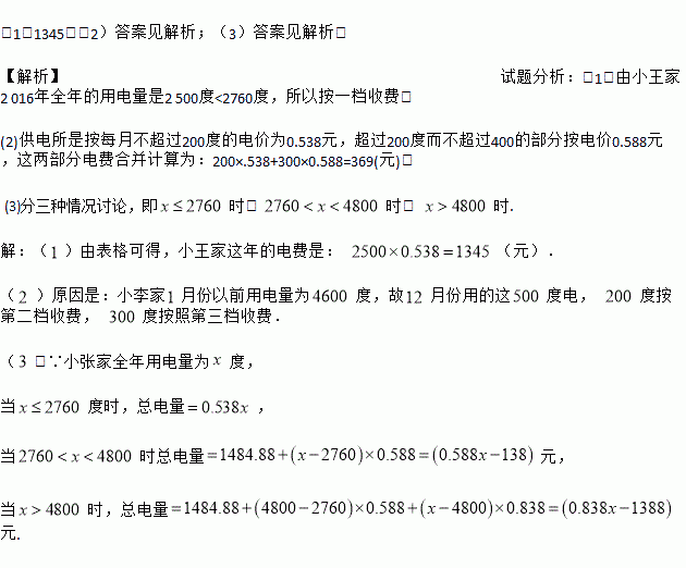 的代数式表示小张家全年应交的总电费,并把结果化简.